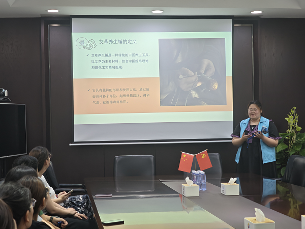 活動現(xiàn)場,專業(yè)指導(dǎo)老師先為職工們系統(tǒng)講解了艾草錘的歷史淵源、精選用料及養(yǎng)生原理,重點示范了針對辦公族肩頸問題的科學(xué)使用方法,包括力度控制與穴位按摩技巧等。